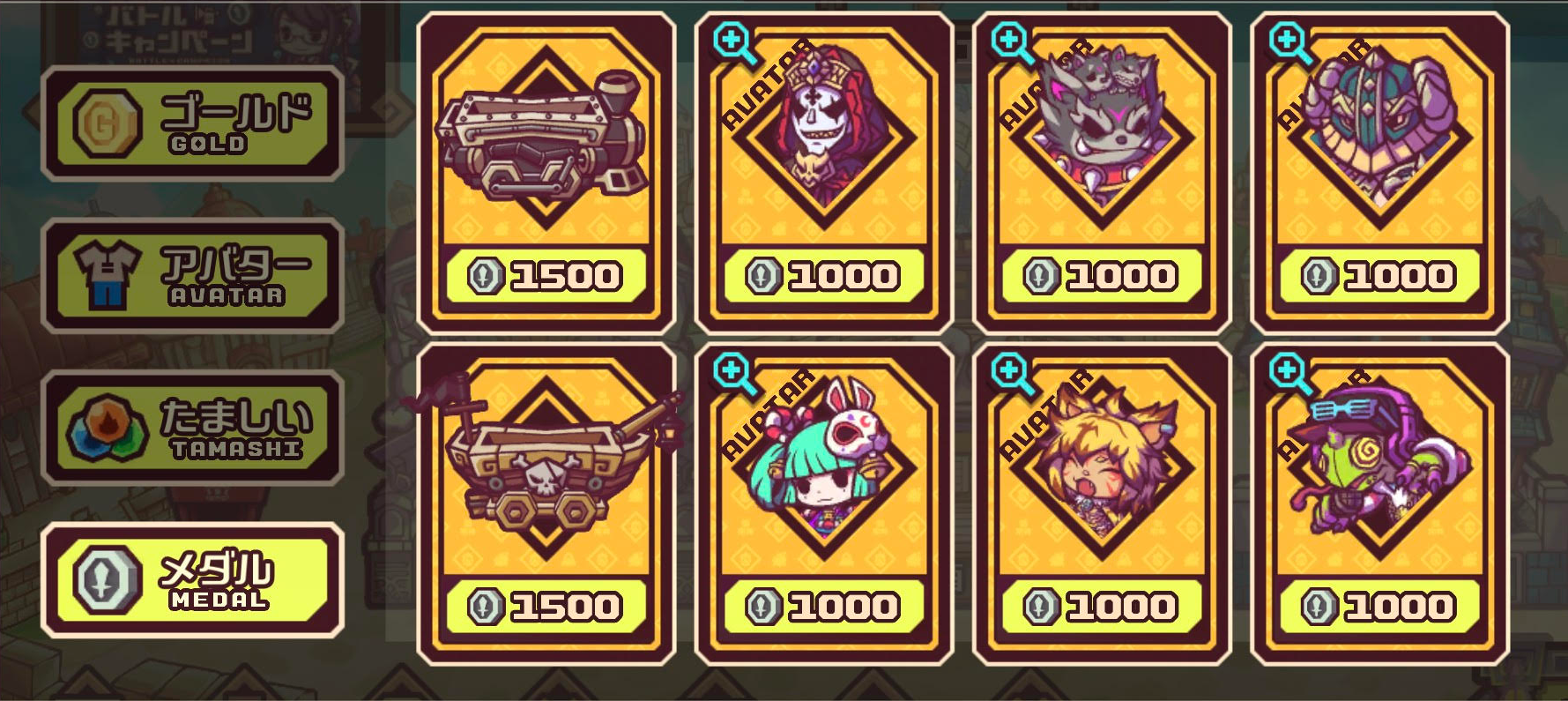 バトルメダルを使って限定アバター(ハンター/トロッコ)と交換が可能!