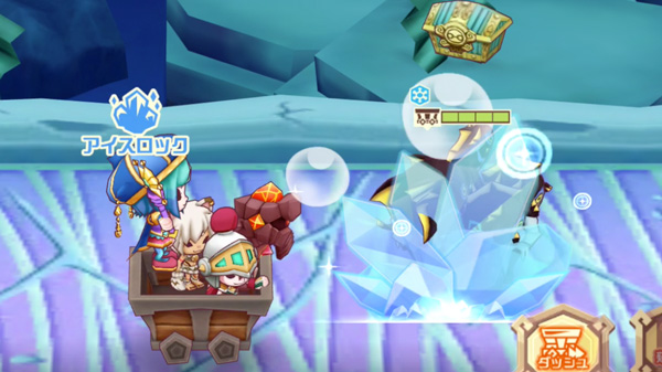 ▲氷状態の敵にアベルのアタックがヒットすると大ダメージ。
