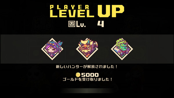 あたりを決めて、プレイヤーレベル25(初期ハンター全開放)になるくらいまでに、Lv.7以上のハンターを3〜4体くらいは育てておけるといいかと思います。