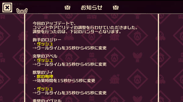 ▲調整の詳細はゲーム内“お知らせ”で。