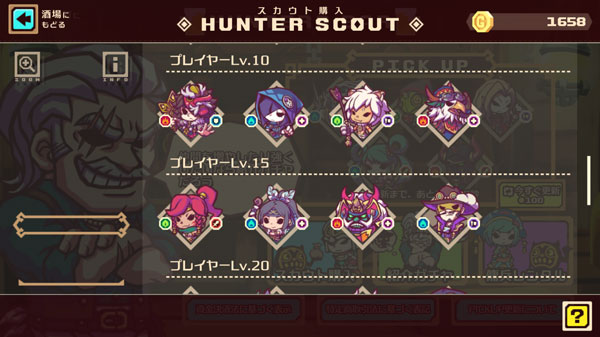 上段はプレイヤーレベルで解放、下段がたましい交換専用のハンター。