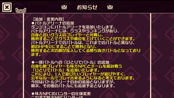 ▲ゲーム内でそのほかのアップデート内容もチェックしてみてね。