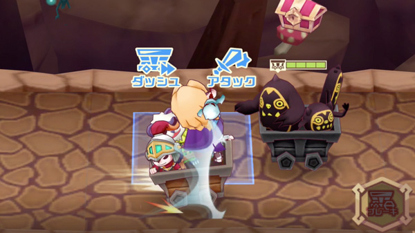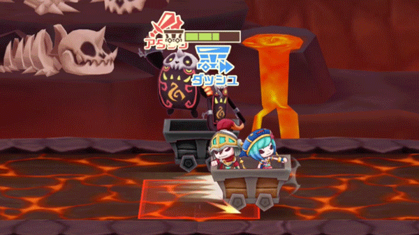 薙ぎ払いは前後範囲内すべての相手に有効なため、2台のトロッコに挟まれた状況でも狙っていける。