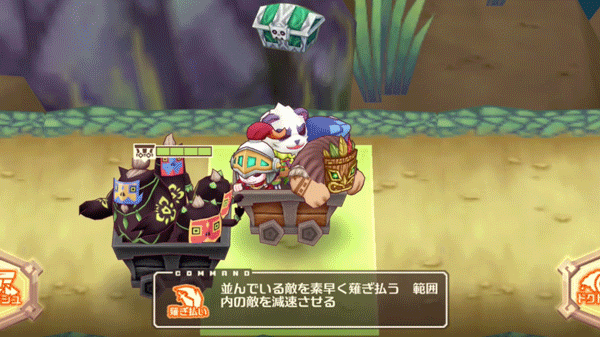 並んでいる敵を素早く薙ぎ払う 範囲内の敵を減速させる