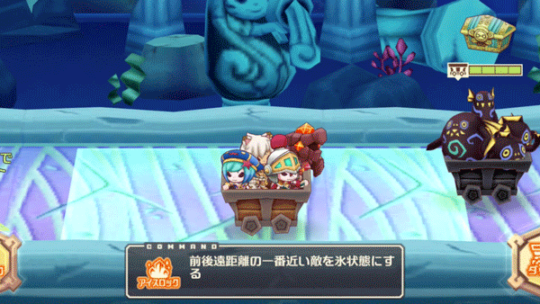 ▲氷状態になった相手は、トロッコが氷漬けに。HPバーの上に氷アイコンが付く。