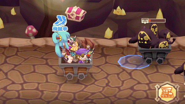 射程の短い乱れ撃ちを相手トロッコの減速を読んで先行入力。うまくいけば、攻撃が連続ヒットする。
