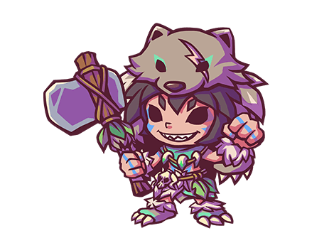 万能型パラメーターでありながら、後方の相手を得意とする貴重な火力タイプのハンター。後方相手に対して前方への吹き飛ばしが狙える“大熊の一撃”を持つため、宝箱を奪えずに前方に出てしまってもカバーしやすい。アビリティの“麻痺特攻”も強力で、麻痺の状態異常が狙えるハルやズイコウと組めば、宝箱奪取性能が高いチームになる。